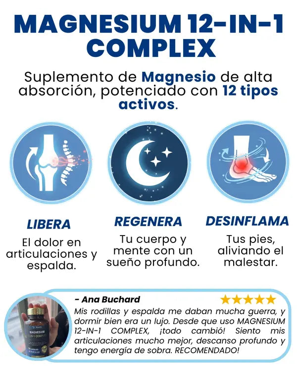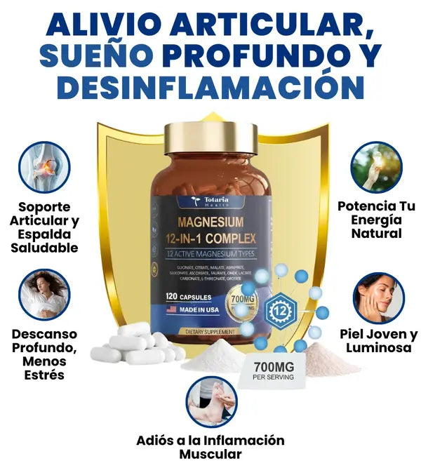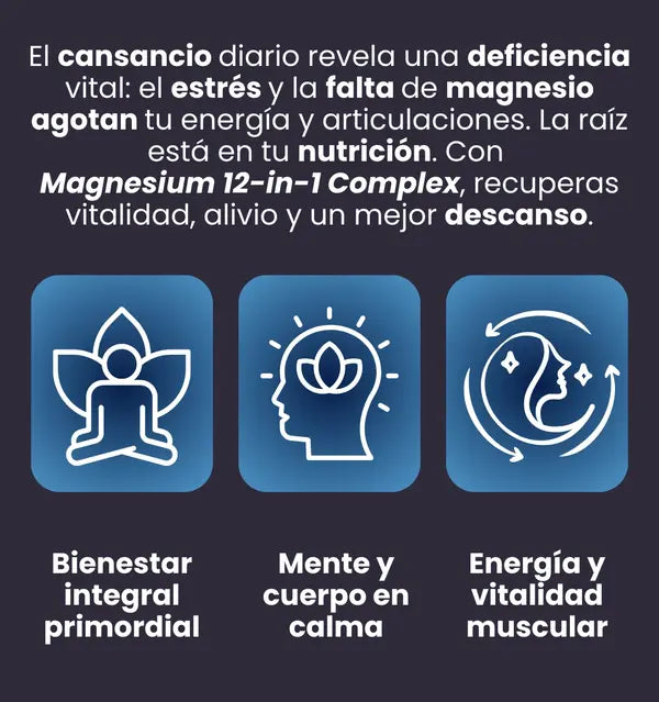 Sí. Después de los 35, tu cuerpo absorbe hasta 60% menos magnesio (por estrés, medicamentos y edad). MagnaFlex tiene las 12 formas activas en dosis profesional de 700mg